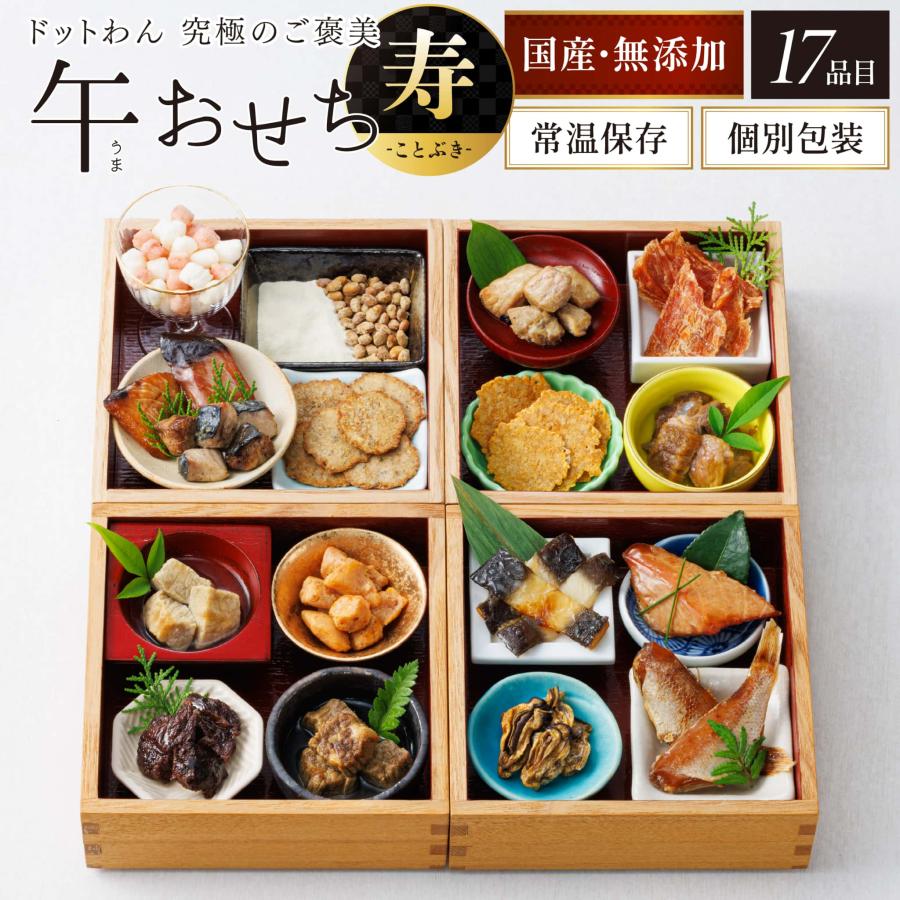 「寿」は、17品目のメニューを詰め合わせたおせち料理で、豪華な内容になっています。